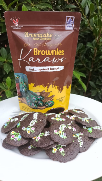 Brownies Karawo merupakan varian dari Brownies Crispy Cookies yang dipadukan dengan Karawo Sulaman Tangan Khas Gorontalo. Menggunakan bahan baku terbaik dan bersertifikat halal. Cocok digunakan sebagai oleh-oleh atau souvenir khas Gorontalo.