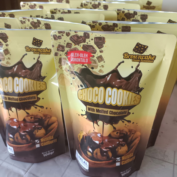 Choco Cookies with Melted Chocolate dibuat dari bahan baku terbaik dan mengandung minyak jagung yang baik untuk kesehatan.