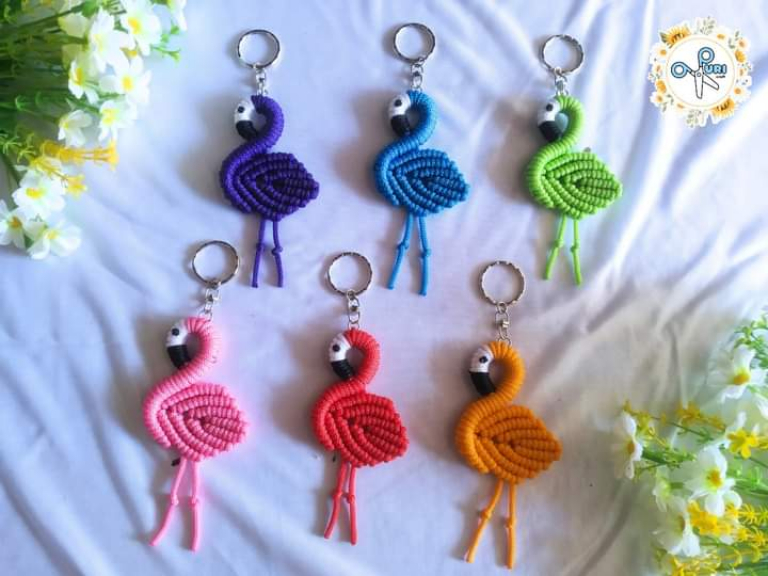 Gantungan kunci macrame dari tali kur aneka warna, dan aneka bentuk