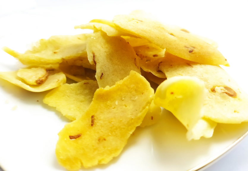 Keripik Ambon terbuat dari tepung tapioka, bawang putih dan racikan bumbu khas Dapur Difra
