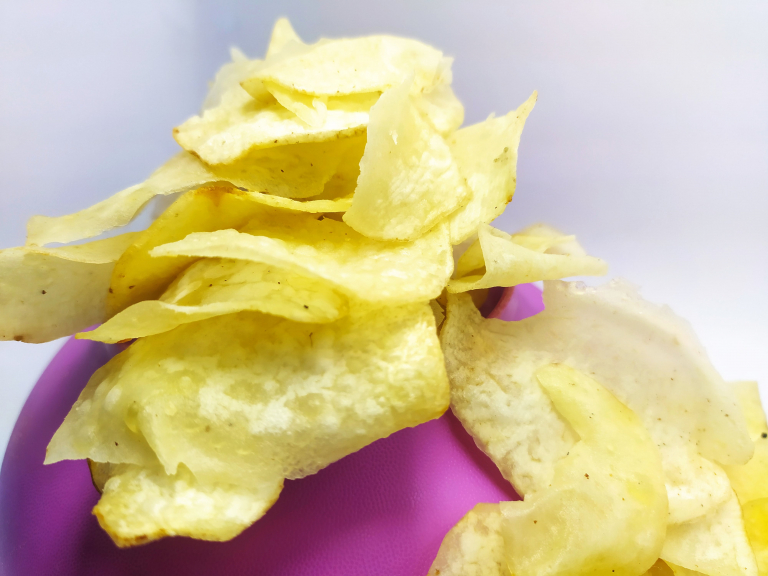 Keripik Taleh terbuat dari umbi talas pilihan, renyah dan lezat, dengan varian rasa pedas dan original