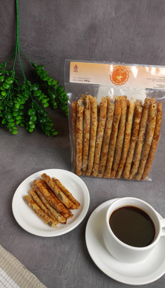 Stik sale terbuat dari sale pisang yang di lapisi kulit lumpia dan di lapisi karamel