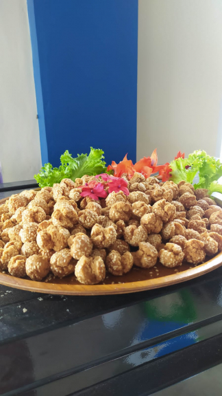Onde Mocaf adalah makanan yang berbahan dasar tepung yang terbuat dari singkong yang sudah di fermentasi rasanya manis gurih dan bentuknya bulat mekar seperti bunga