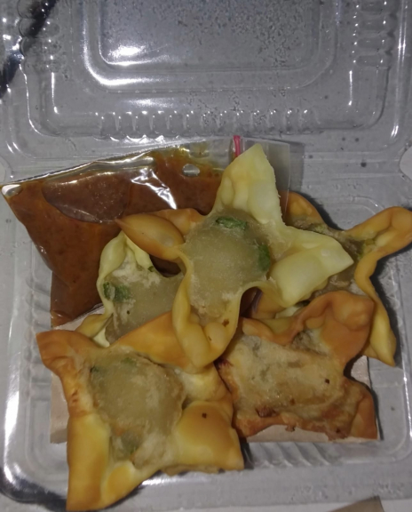 Batagor mini makanan ringan yang di sajikan dengan kuah kacang