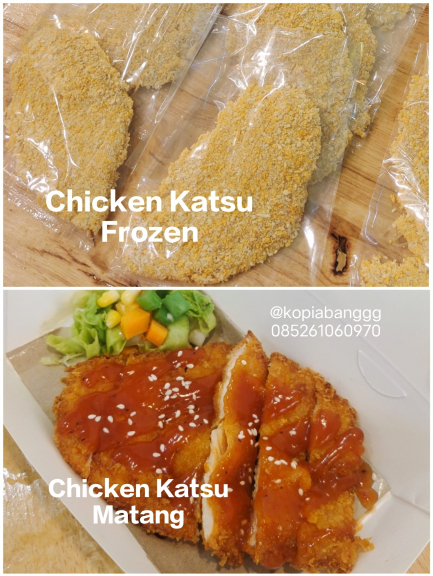 Chicken katsu merupakan makanan khas jepang dalam bentuk daging ayam utuh tanpa tulang yang dibalut tepung crispy. Tersedia kemasan Frozen dan matang.