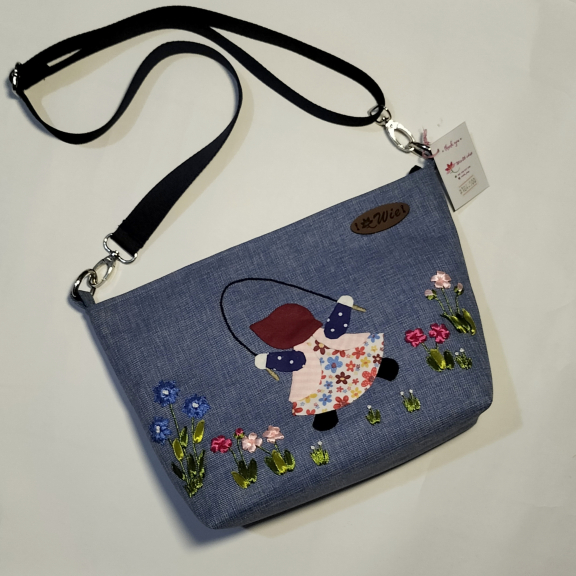 Tas Selempang kain kanvas dengan sulam pita atau benang handmade. Size 30x20x10 cm Furing kain cordura waterproof. handle webbing polykatun. Aksesoris premium.