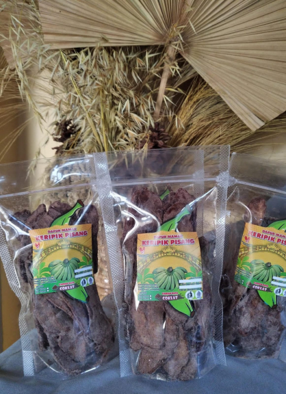 Keripik Pisang Kepok dengan varian rasa coklat. ...