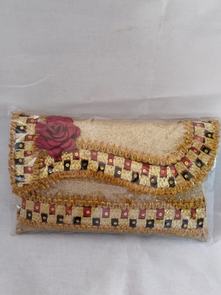 Tas tapis terbuat dari gliter dan bunga sulam tapis