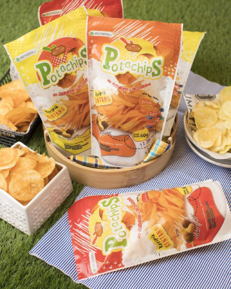 Potachips adalah keripik kentang berkualitas yang diiris tipis sehingga teksturnya renyah dan rasa kentangnya tetap terjaga. Terdapat 3 varian rasa, Cheese, Balado, dan Samyang.