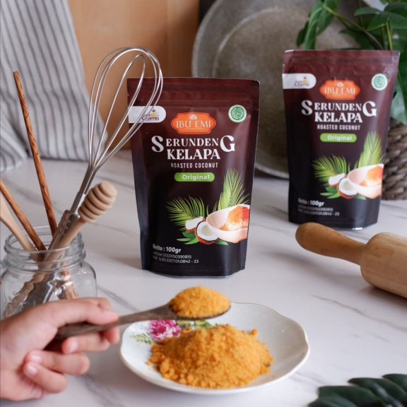 Serundeng Kelapa Ibu Emi adalah kelapa yang di sangrai dan diberi bumbu balado. Keunikannya yaitu tekstur serundeng yang lembut.