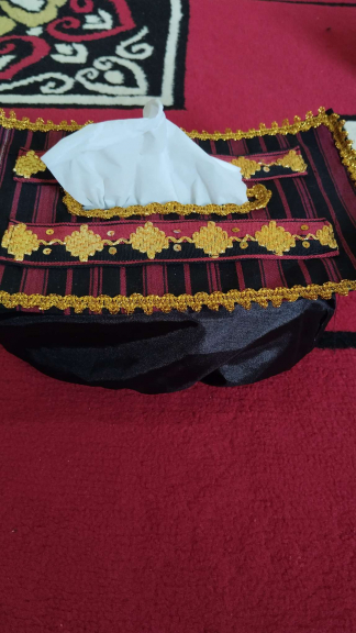 Wadah kotak tisu dibuat dari kain tapis dijait dibuat ke bentuk kotak tisu