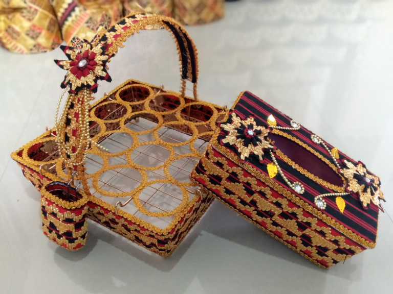 Set Wadah Air Mineral dan Kotak Tissue Tapis Lampung memberikan nuansa meja anda menjadi estetik dan elegant