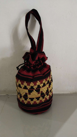 Tas Serut Tapis terbuat dari kain Tapis yang dijait menjadi Tas serut.