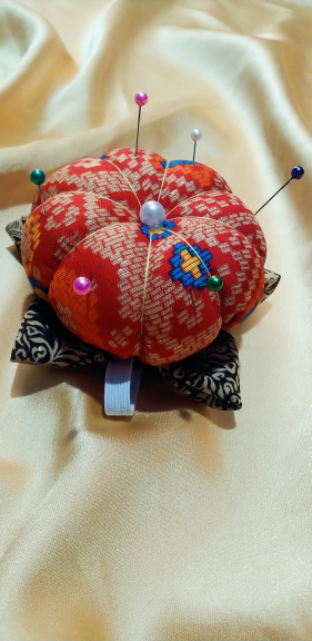 terbuat dari kain perca dan dakron. Bantalan untuk menyimpan jarum atau pentul agar tidak tercecer.banyak pilihan motif Yg menarik dan warna