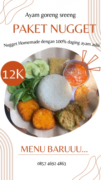 Contoh paket ayam harga 10k dengan isian ayam, nasi, tempe, terong, kremesan, sambal, lalapan,