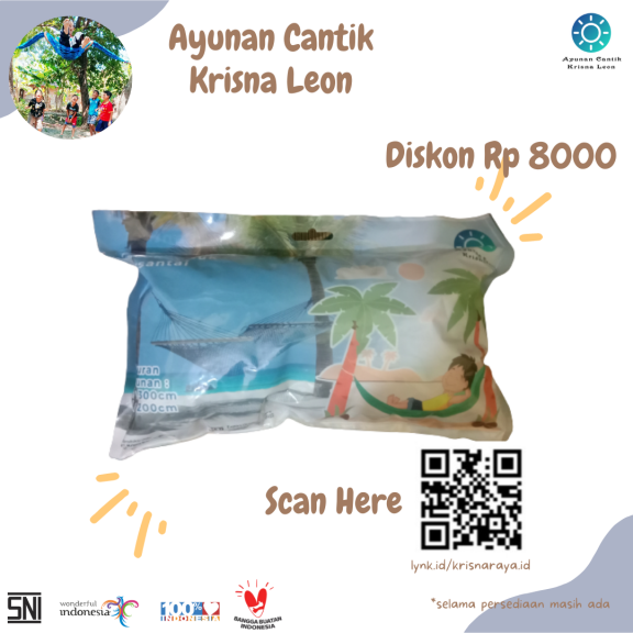 Ayunan Cantik Krisna Leon ini terbuat dari bahan tali tepian kain yang dianyam dengan simpul mati sehingga kuat dan tahan lama, panjang+-3m, lebar+-2m, berat+-500gram. Sudah bersertifikat SNI Penggunaan Dobel.