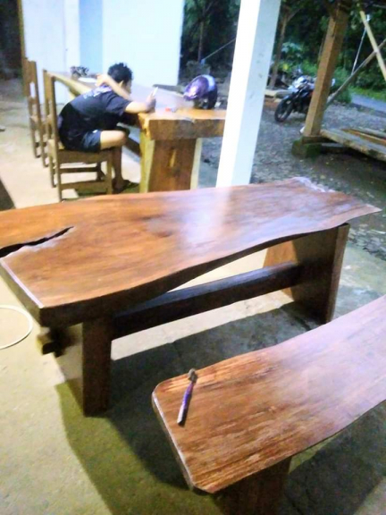 Meja berbahan kayu utuh kokoh dan kuat..menampilkan keindahan serat kayu
