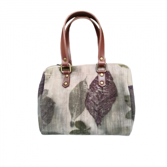Nunosei HandBag Ecoprint terbuat dari kain katun bambu, Tampil anggun dan berwawasan lingkungan dengan tas tangan ecoprint ini. Desain alami yang elegan, cocok untuk wanita modern yang peduli pada bumi.