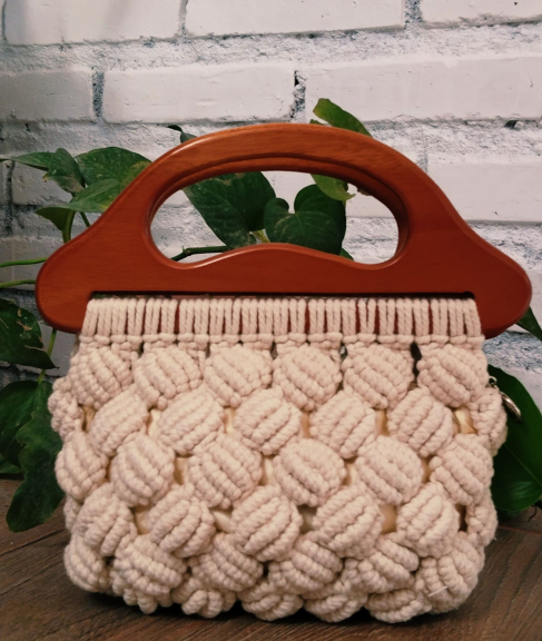 Tas Anyaman Macrane - adalah tas handmade yang dikerjakan menggunakan teknik anyaman simpul² Macrane - detil produk : 1. Tapi katun macrane super 3mm 2. Inner kain satin 3. Isian 1 ruang pakai resleting 4. Aksesoris wooden handle 5. Ukuran bervariasi