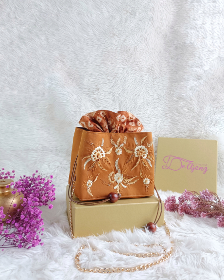 Kawai bag dengan bahan inner Suede premium dan outer jumputan kombinasi bordir payet yang telah dilengkapi dengan rantai panjang yang bisa dilepas pasang. size L = 14cm P = 18cm T = 20cm