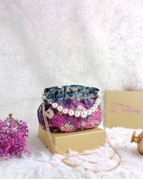 Mutiara clutch bag terbuat dari bahan suede dan blomgket palembang yang telah di lengkapi dengan jinjinh mutiara dan rantai panjang rose gold yang biasa di lepas pasang size P = 25cm L = 11cm T = 18cm