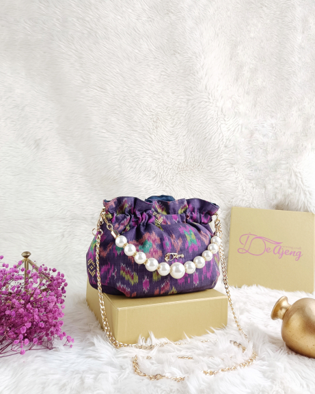 Mutiara clutch bag terbuat dari bahan suede dan blomgket palembang yang telah di lengkapi dengan jinjinh mutiara dan rantai panjang rose gold yang biasa di lepas pasang size P = 25cm L = 11cm T = 18cm