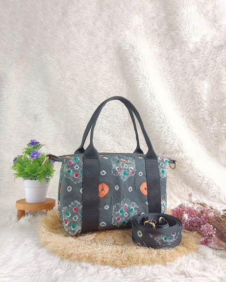 Jumputan bag dengan bahan inner waterproof dan outer jumputan palembang yang telah di lengkapi dengan tali panjang yang bisa di lepas pasang sehingga bisa kamu gunakan sebagai tas jinjing ataupun selempang. size L = 12cm P = 27cm T = 19cm