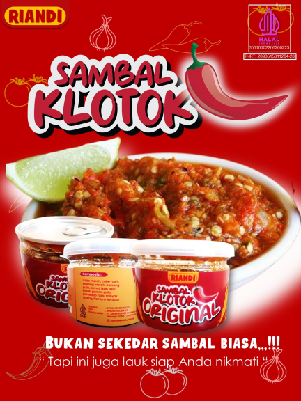 Sambal Klotok Riandi adalah sambal tradisional yang kami kemas secara modern dan kami racik dengan bahan-bahan pilihan terbaik serta kami olah dengan sepenuh hati sehingga memberikan rasa yang khas, unik, enak dan bikin ngangenin