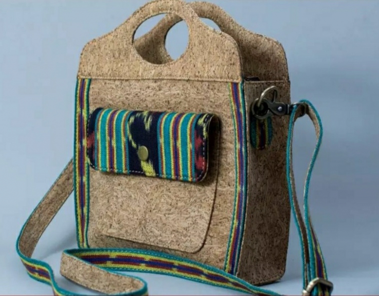 Produk lokal yang terbuat dari bahan kulit kayu yang dikombinasikan dengan perca tenun. Di dalam tas diisi furing kain suede yang lembut.