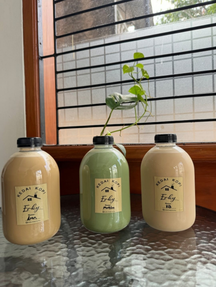 Kemasan botol 1000ml kita buat untuk bisa dibuat sharing dengan keluarga ataupun teman. Kita bisa dalam varian kopi maupun non kopi. ayo rasakan hanganya minum dari kedai kopi erky bersama teman maupun keluarga. harga promo 90rb saja