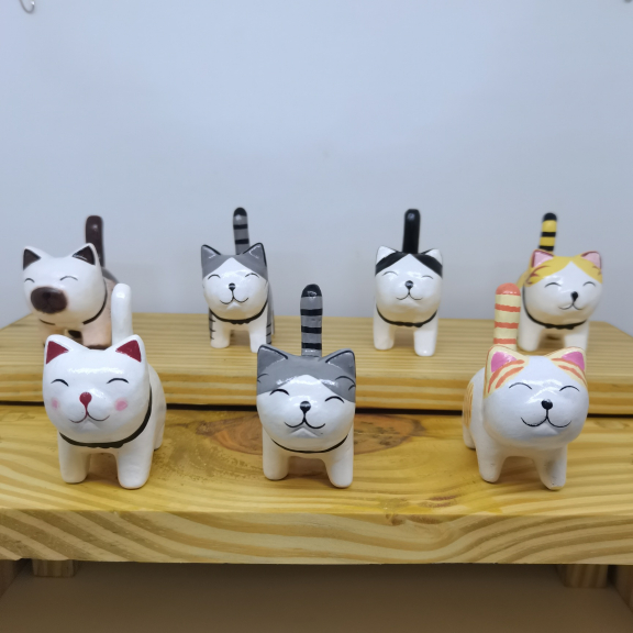 Kucing gendut terinspirasi dari manekineko kucing keberuntungan Jepang. Bahan dari kayu. Pewarnaan bagus, halus dan rapih.