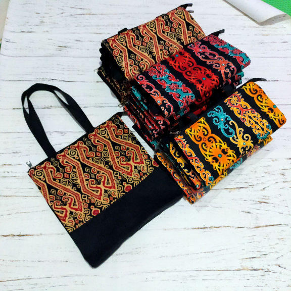 Tas seminar berbahan kain motif khas Kalimantan Barat, bisa custom model/design, warna/motif kain, ukuran dan bisa satuan