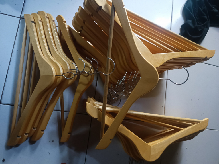 Hanger kayu palangan ukuran dewasa,panjang 43 cm,warna natural.harga perbiji