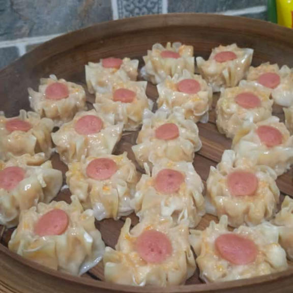 Dimsum Original dengan adonan campuran ayam ditambahkan toping sosis, dijamin rasanya enak dan harga terjangkau