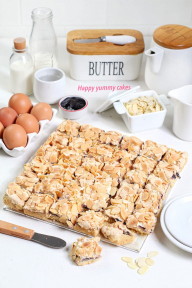Kue kering dengan toping almond dan selai bluberry, bite size