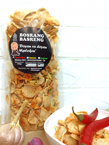 Bosrang basreng snack ringan renyah yang nyuruh kamu tetep memakannya walaupun kagak doyan tapi harus makan seperti slogannya dalam bahasa khas pekalongan doyan ra doyan mploken