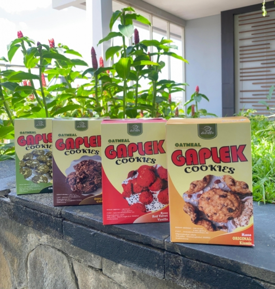 Oatmeal gaplek terbuat dari tepung gaplek/tepung singkong yang tidak memiliki kandungan gluten, campurannya menggunakan oatmeal yang kaya akan serat, baik untuk jantung, menjaga kadar kolesterol, menjaga berat badan juga menggunakan Gula Semut Aren