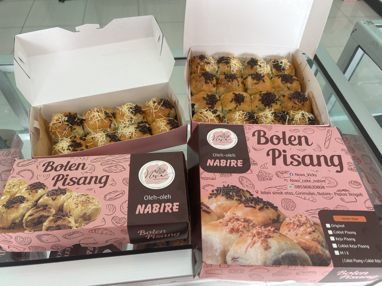Bolen pisang terbuat dari kulit pastry dan di isi dengan coklat, pisang asli perkebunan mama-mama Nabire Papua.