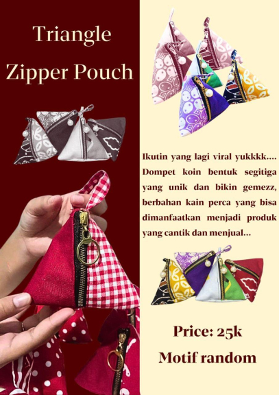 Produk dari bahan kanvas,. Perca, denim, yang dibuat dengan handmade, ada juga yang dengan menggunakan mesin agar bisa menjadi nilai jual