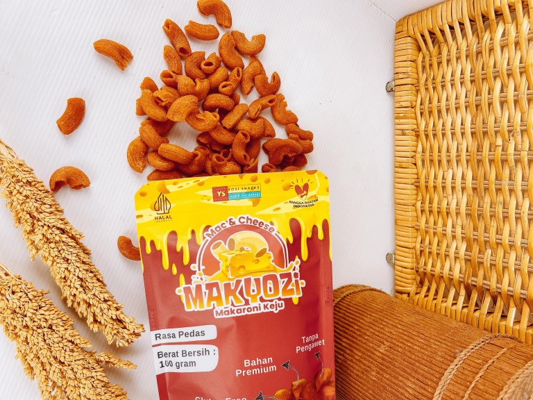 MAKYOZI cemilan yang berbentuk Makaroni dengan bahan dasar keju kraft cheddar, gluten free tanpa bahan pengawet