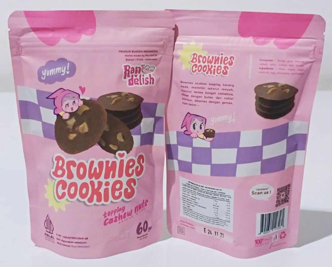 Brownies cookies topping kacang mede memiliki tekstur renyah, dibuat dengan butter dan coklat premium