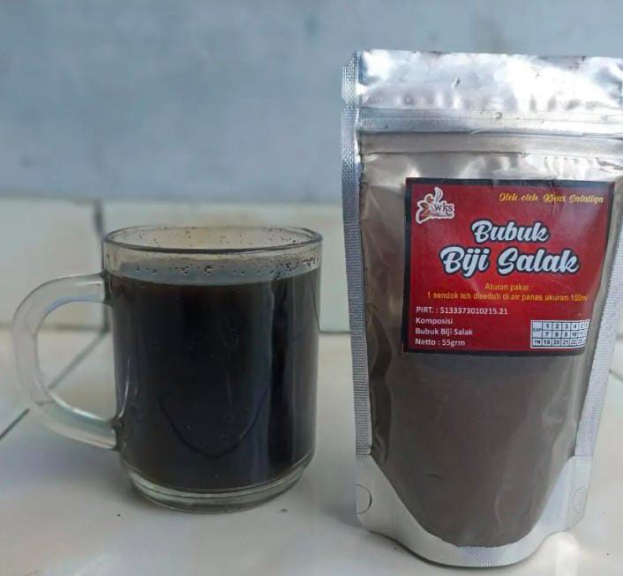 Bubuk Biji Salak adalah minuman herbal terbuat dari biji salak dikombinasikan dengan kopi. Sehari 2X sehari yaitu 1 sendok ditambah 75ml air panas setiap pagi dan malam. Penggunaan rutin tidak memberikan efek samping negatif maupun ketergantungan.