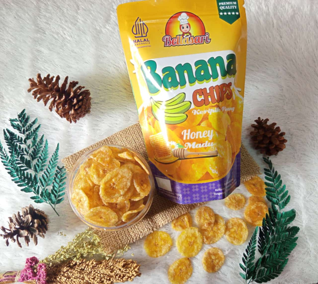 Keripik pisang terbuat dari pisang raja nangka di iris seperti bentuk koin di goreng dan di tambahkan dengan aneka rasa sehingga menghasilkan aneka keripik pisang yang lezat.