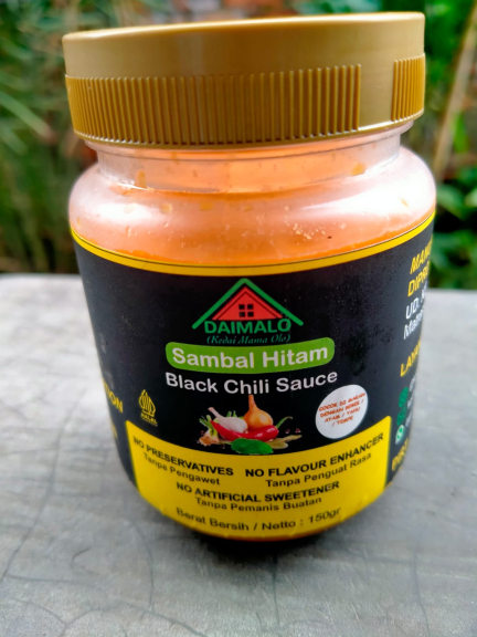 Sambal kemasan dalam botol, terbuat dari rempah-rempah pilihan dengan rasa pedas dan gurih