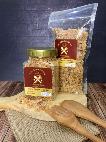 Bawang goreng renyah khas SELERA RATU, dibuat dari bawang merah pilihan, tanpa pengawet, higienis, dan tahan lama.