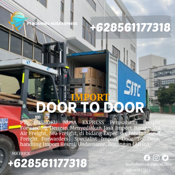 MARKETING Mr. ERICK Perkenalkan kami dari PT. BOSHOKU NUSA EXPRESS Perusahaan di bidang Expedisi ( International Freight Forwarders) Specialist Import Door To Door handling import Resmi, undername, borongan (All in).