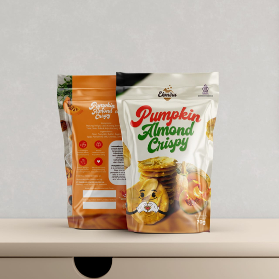 Produk ini bentuknya, bulat tipis, dipadu dengan rasa coklat dan vanilla, di toping almond dan keju