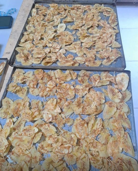Keripik pisang yang menggunakan pisang raja yang dan ditaburi dengan susu dan keju
