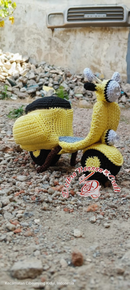 miniatur vespa rajut yang dibuat sesuai reques pelanggan dibuat dari bahan benang polycerry, dakron, kawat dll. dikerjakan secara manual. lama pengerjaan 7-14 hari.