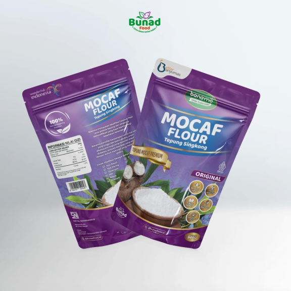 Tepung Mocaf Banamo dari singkong pilihan, diproses modern untuk tekstur lembut dan rasa netral. Bebas gluten, cocok untuk roti, kue, MPASI dan olahan sehat lainnya.